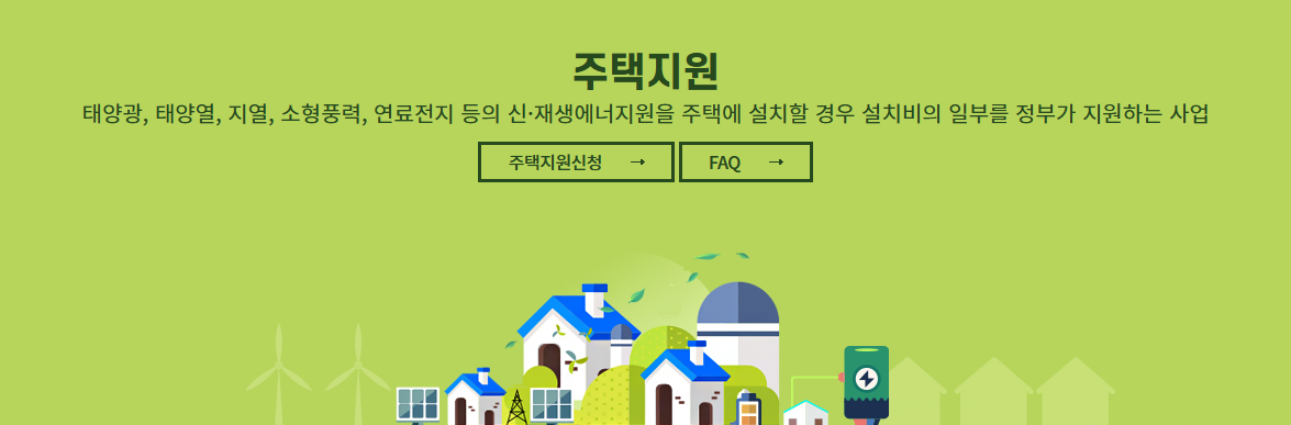 정부는 ‘신재생에너지보급(주택지원)’ 사업을 통해 단독주택과 공동주택에 태양광을 설치할 때 일부 비용을 지원하고 있습니다.