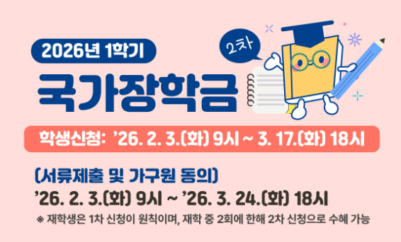 2026년 1학기 국가장학금 2차 신청은 2월부터 시작되어 3월 중순까지 진행되며, 신입생과 편입생뿐만 아니라 1차 신청을 놓친 재학생에게도 중요한 기회가 됩니다.