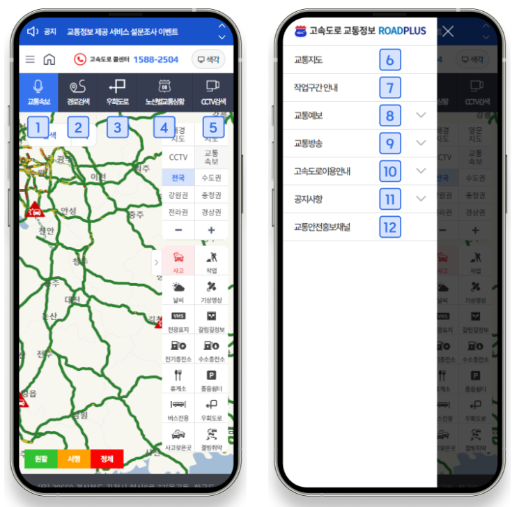 - 노선별 실시간 교통 상황을 확인할 수 있고, CCTV 화면도 바로 연결됩니다.