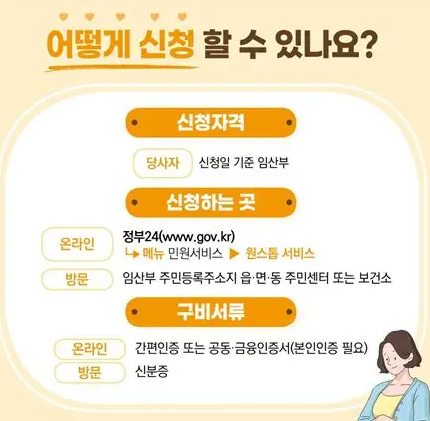 - 신청시기: 분만 예정일 40일 전 ~ 출산 후 30일 이내